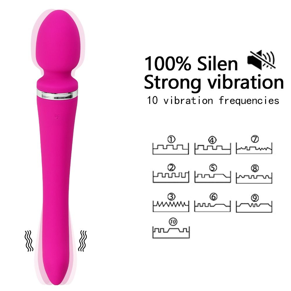 Vibrador elegante y de alta calidad con doble cabezal de silicona con 6 velocidades y 10 modos de vibración.